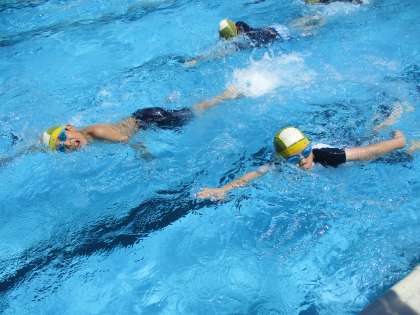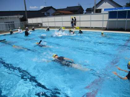 1mでも長く泳げるように、がんばっています。この暑さ、水の中はとても気持ちよさそうです。