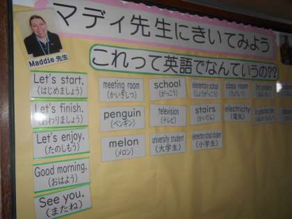 4日(木)の放送では、「ようかいに、なんかようかい?(妖怪に何か用かい?)」を英語で何と言うかを知りたいという質問でした。日本語のだじゃれを英語にしても、だじゃれにならないんだ、と子どもたちは気づいたようです。英語のだじゃれを知りたいという声が聞こえていたので、次回教えてもらえるといいですね。