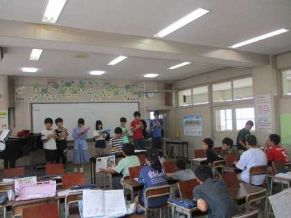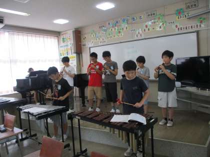 「指使いを間違えないで吹きたいです」「リズムに気を付けて演奏します」 合奏を発表しました。