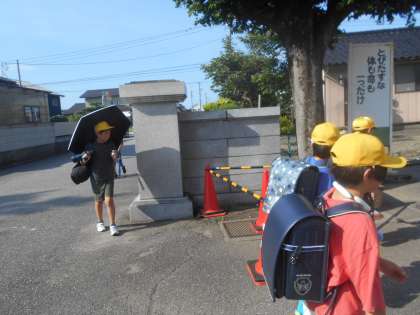 今日は猛暑となる予想。日傘や首を冷やすグッズなどで熱中症対策をしてきた子どもたちがたくさんいます。