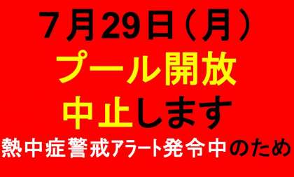 子供たちの登下校時やプール監視員(保護者、教員等)の安全確保のため、本日のプール開放は中止とします。