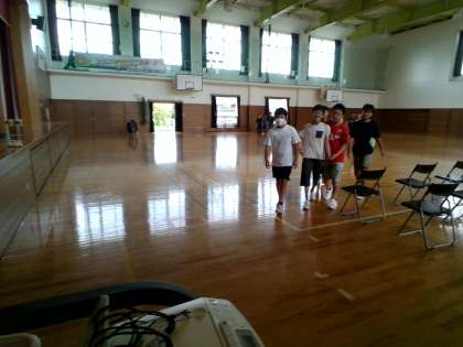 登校後、始業式の準備のために自分から体育館へ向かう6年生の姿がたくさんありました。