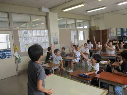 4年生 2学期スタート 公開日 2024/08/28 更新日 2024/08/28 4年生 2学期が始まりました。 朝から汚れを見付けて清掃に取り組んだり、目当てをもって始業式に臨んだりしました。 教室では夏休み3択クイズをして楽しみました。明日から学習スタートです。がんばりましょう。