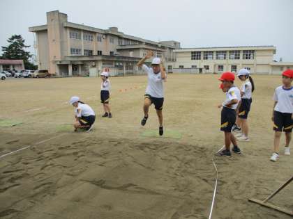 走り幅跳びに挑戦です。今日は初めての記録測定です。