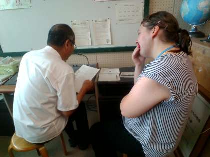 今日のお昼の放送は、イマージョンALTのM先生とT先生でした。