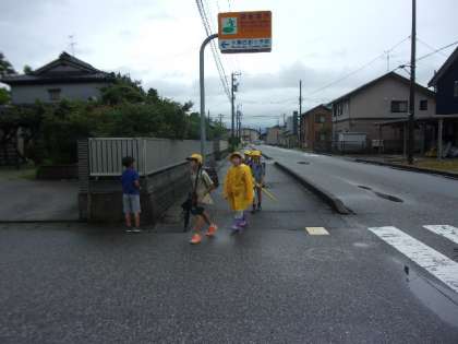 朝の様子です。台風10号の影響で朝から雨が降っています。登校する頃には、小雨になり、子供たちは元気に学校にやってきました。今日から9月です。今週も1週間頑張りましょう。