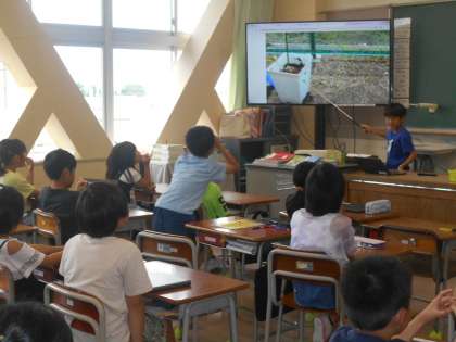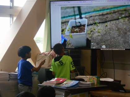 2年生 生活科 公開日 2024/09/02 更新日 2024/09/02 2年生 5月から育ててきた自分の野菜について、友達に伝えていました。肥料をやったり、鳥に食べられないように網をかぶせたりなど、一生懸命世話をしたこと、実ができたときのこと、夏休みもたくさん実がなってうれしかったことなどを話していました。