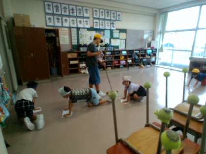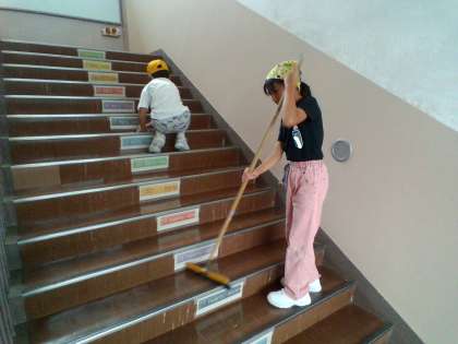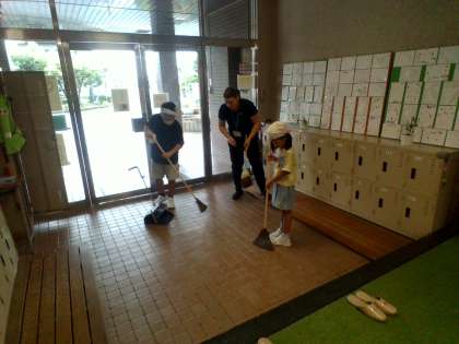 イマージョンALTのM先生も一緒に掃除をしています。