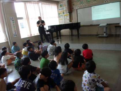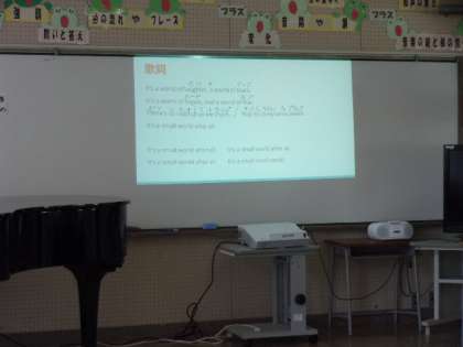 3・4年生は音楽会に向けて歌の練習に励んでいます。今日は、英語で歌う部分の発音をALTのM先生に教えていただきました。普段の生活から、会話の中に積極的に英語を取り入れている天瀬っ子です。音楽会でも自信をもって歌えるといいですね。