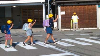 今日も、朝から暑い中、影もない場所でしたが、一番に通る子どもたよりも先に来て待ってくださっていました。子どもたちに安全に横断するように促したり、「おはよう」「いってらっしゃい」と挨拶してくださったり。いつもいつも本当にありがとうございます!