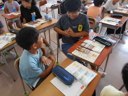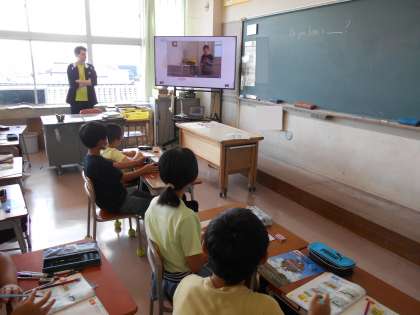 世界の子供たちの持ち物について動画を見たり、ペアで持っている文房具について尋ね合ったりしました。