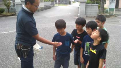 2年生の男の子たちは、虫好きが多く、登校したら学校の花壇や草むらで虫をとっています。今日は、「とっくり蜂」を見つけたとかで、用務員さんに話をしたり、蜂の話を聞いたりして盛り上がっていました。