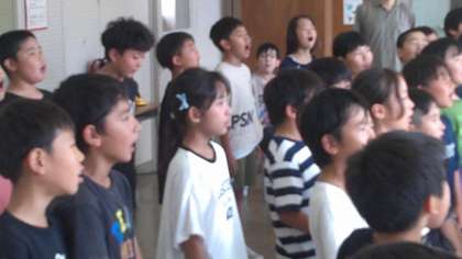 3・4年生 合唱 公開日 2024/09/19 更新日 2024/09/19 4年生 講師の久田先生の指導に子どもたちの表情も歌声もどんどんすてきになっていきました。歌声は日頃の声の出し方から意識したらいいと教えていただき、子どもたちは、帰りの挨拶「さようなら」をすてきな声で言っていました。家でも「ただいま」をすてきな声で言ってみるそうです。