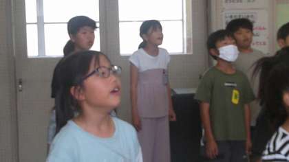 3・4年生 合唱練習 公開日 2024/09/19 更新日 2024/09/19 3年生 昨日教えてもらったことを思い出して歌っています。遠くへ声を届けようとする気持ちが伝わってくる表情をしていますね。