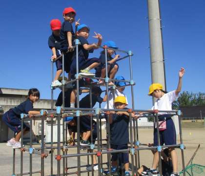 実際にジャングルジムに上ってくじらぐもにさようならをしてみました。青い空に向かって大きな声でセリフを言いました。