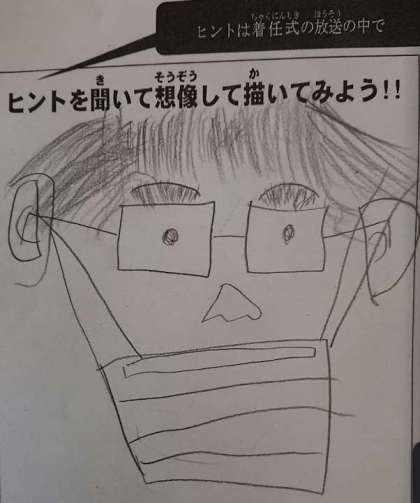 着任式(4/6)は放送で自己紹介。スリーヒントで校長先生の顔を想像してみました。何という能力でしょう。二年生のHさんが想像した校長先生の顔、まさにそっくり。