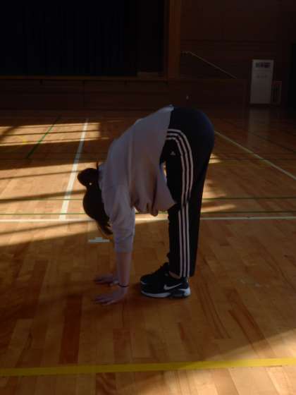 また、たったままでもできます。てのひらがぴたっとじめんにつくとすばらしいですね。