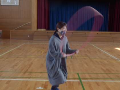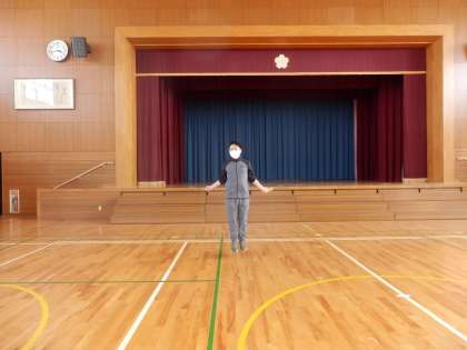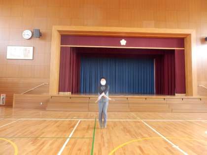 1 まずはじゅんびうんどうで まえとび。みんなはなんかいできるかな。