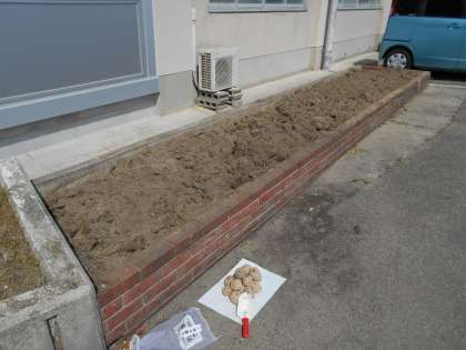 花壇にジャガイモを植えました。このジャガイモは、6年生が理科の学習に使用します。子供たちのため、しっかりと育ってくれることを祈ります。