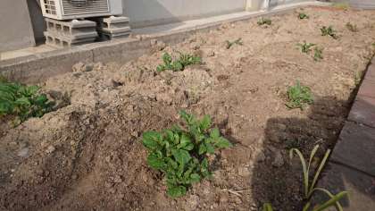 先日植えたジャガイモが芽を出しました。少しずつ成長しています。思えば、休業になってから2ヶ月半。子供たち不在の静かな学校にあっても、こうした姿から月日の移ろいを感じます。