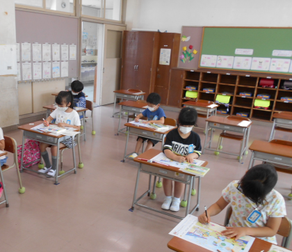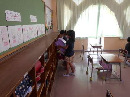 入学式の次の日から臨時休業が始まったので、1年生にとって、今日は初めての授業です。朝から「勉強するのが楽しみ」と、にこにこ笑顔の子供たち。ランドセルの片付けも楽しそうです。これから学校で学習したり運動したりしましょうね。