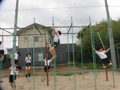 今日は体育科の時間に50メートル走や鬼ごっこをしたり、登り棒を登ったりしました。再会して2日目の今日も元気いっぱいに活動をしていました。