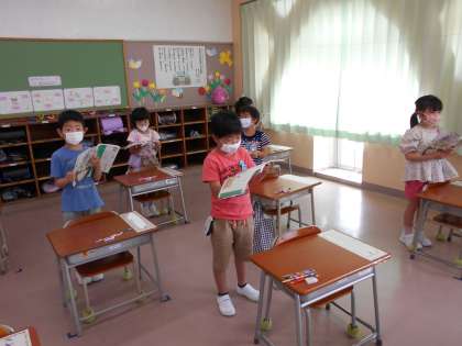 国語の時間の音読です。速く読んだり、ゆっくり読んだり、にこにこ楽しく音読をしています。