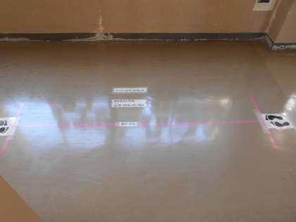 身体測定の順番を待つ子供たちは、この足跡の上に座ります。