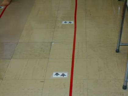 身体測定の順番を待つ子供たちは、この足跡の上に座ります。