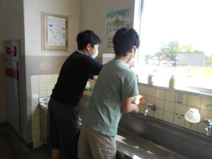 水橋西部小学校では、感染症予防をしています。クラスのために進んで窓を開けて、ていねいに手洗いうがいをしている友達がいました。しっかりとマスクを付けて、教室を機械で除菌して、元気な天瀬っ子を目指しています。