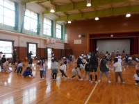 初めての体育の学習です。すばやく体操服に着替えたり、脱いだ服をきれいにたたんだりすることができました。