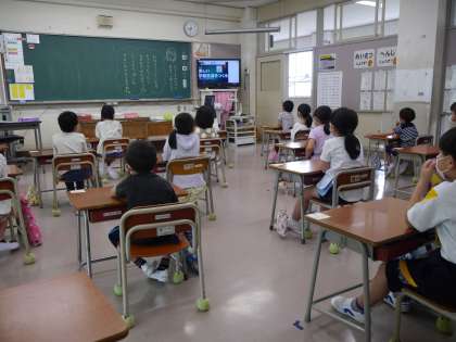 再開式 公開日 2020/06/01 更新日 2020/06/01 お知らせ 新型コロナウイルス感染症による影響で、始業式も入学式もこれまでと違った形で行いました。分散登校を経て、ようやく本日全員登校ができました。そこで、本日WEBソフトを使い、再開式を行いました。 校長先生からは、全校児童に向けて、再開(再会)の喜びとともに命を守ることを伝えました。もうしばらくは、感染症予防のための学校生活になりますが、皆元気に登校できたことが何よりです。
