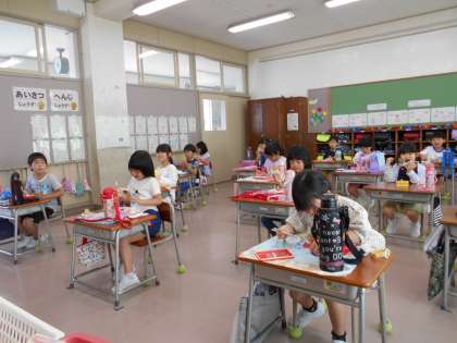 お昼の時間は、みんなうれしそうに弁当を食べていました。お弁当を広げるのも、片付けるのも、とても上手でした。