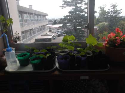 みんなが,がんばって育てているヘチマがとっても元気だよ。これからも元気に育つよ。お楽しみに。