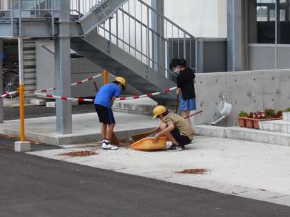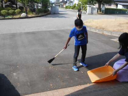 「正面玄関は学校の顔だから」と、きれいに清掃しています。
