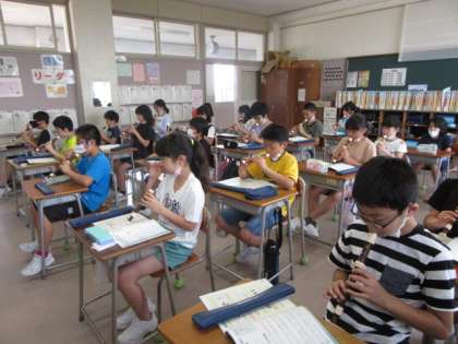 今日は外国語の時間に、アルファベットについて学習をしました。また、音楽科の時間には、音を聴いて違いを見付けたり、リコーダーを使って演奏したりしました。