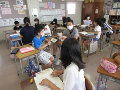 今日は国語科の時間に、前回の時間考えた質問シートを使って友達にインタビューをしました。時間いっぱいインタビューをしていました。