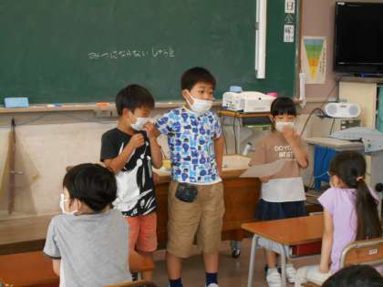 すっかり新しい学校生活様式を子供たちが考え、実践する姿にたくましさを感じました。これからも知恵を出し合い、楽しい学校生活を送ってほしいと思います。