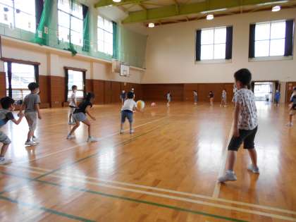 席に座ったまま楽しめるゲームや、ドッジボールは、1コートの人数を少なくするなど、集会係の子供たちの工夫が見られました。