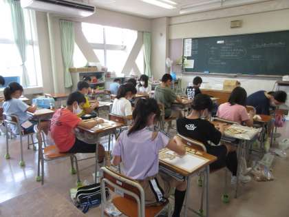 今日は、この前の時間に糸のノコで切ったパズルに色を塗りました。水彩やペンを使って丁寧に塗っていました。