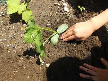今日の4年生は、理科の授業でヘチマを植えました。先に植えていた友達に、植え方を教えてもらいながら植えました。ぐんぐん成長しているヘチマもあります。元気に育つように、これからもお世話を頑張ろうと思います。