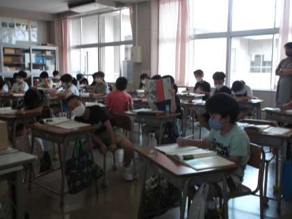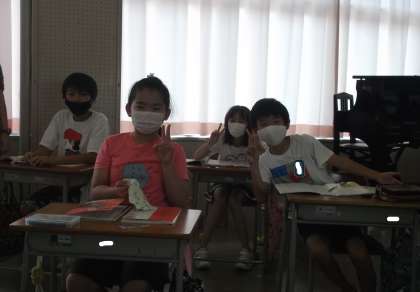今、4年生は国語の授業をしているところです。内容は「アップとルーズで伝える」です。今、みんなは学習の感想を書いているところです。ぼくはさっそく、アップとルーズを使い分けて写真をとってみました。(上写真アップ・下写真ルーズ)