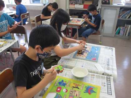 今日の図画工作科の時間にはパズルのピースにニスを塗りました。片付けまで協力してできる姿にさすが5年生だと感心しました。