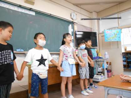 ぼくたちは、いつもたのしいせいかつをしています。たのしく話合いなどをして、いつもかいけつしています。