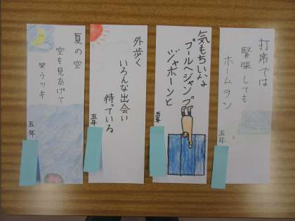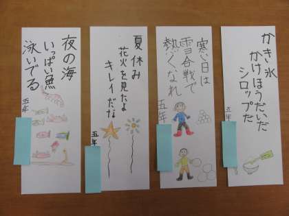 好きな季節について、言葉を探して俳句をつくりました。様子を助詞や表現を工夫していました。