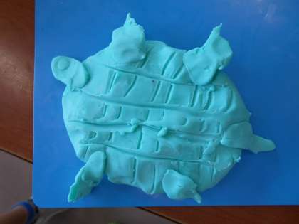きょうは、あのねしゅうかんでした。先生とお話をしました。まっているときにねん土をしました。大きなカメをつくりました。
