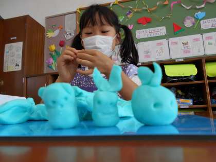 新しい粘土に興奮していました。今日は、粘土を柔らかくして、好きなものを作りました。みんなとっても楽しそうでした。「きりたんぽ」や「ドラゴン」等、作品が十人十色でした。