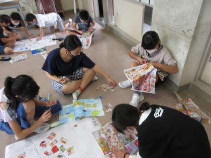 今日は、社会科の時間に持ち寄ったスーパーのチラシを見て産地を調べました。自分たちが食べている食材がいろいろな地方から届いていることに気付きました。