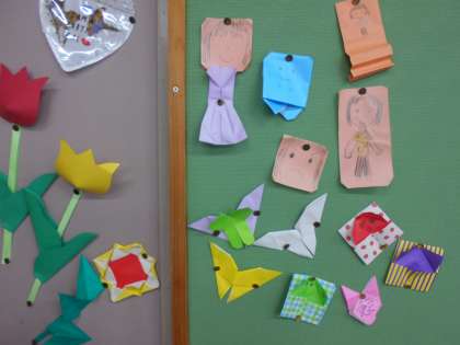 1年生の子供たちは、休み時間や家で絵を描いたり、折り紙でかわいらしいものを作ったりしています。