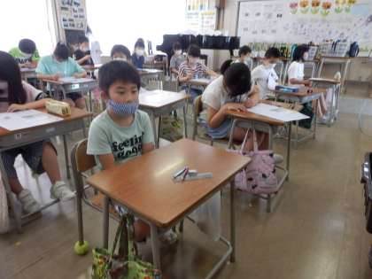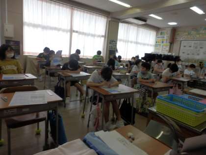 昨日の4時間目は理科のテストをしました。ぼくは見直しも頑張ったので、自信があります。みんなすごく集中していました。